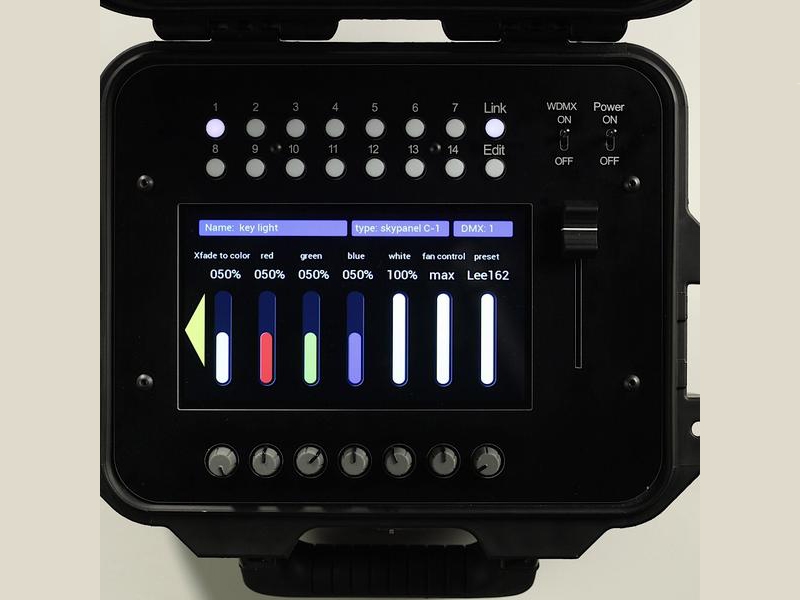 Met zijn robuuste ontwerp heeft deze DMX-controller een vaste plek verworven op de set. Door zijn eenvoudige programmering en ongecompliceerde werking is uitgebreide achtergrondkennis bij gebruik niet nodig. Nadat u de fixtures heeft toegevoegd, zijn aanpassingen zeer eenvoudig door te voeren. Alle armaturen, de bijbehorende DMX-adressen en hun intensiteit worden overzichtelijk op één scherm getoond. De ingebouwde batterij en WDMX-transmitter zorgen voor volledige bewegingsvrijheid op de set.