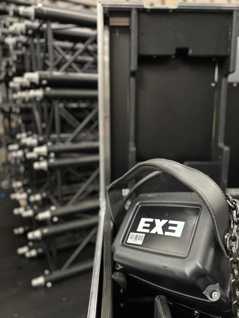 wordt gevormd door rigging- en podiummateriaal van EXE Technology en PROLYTE.
